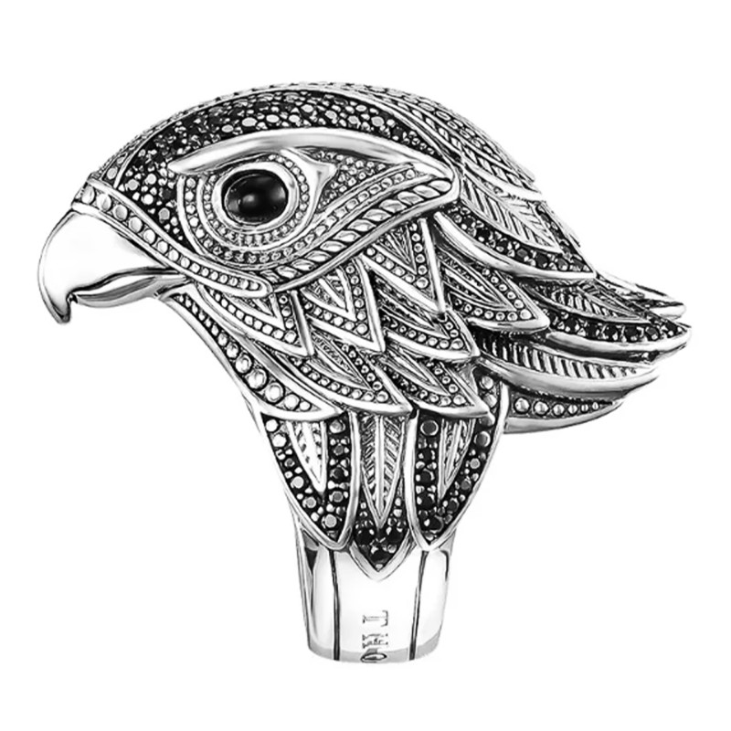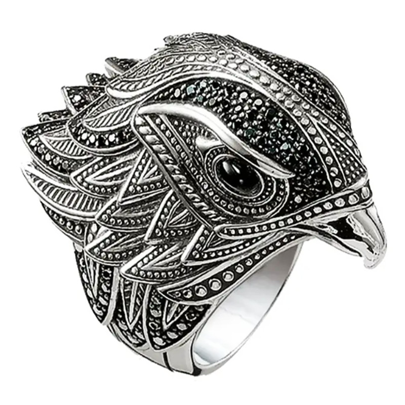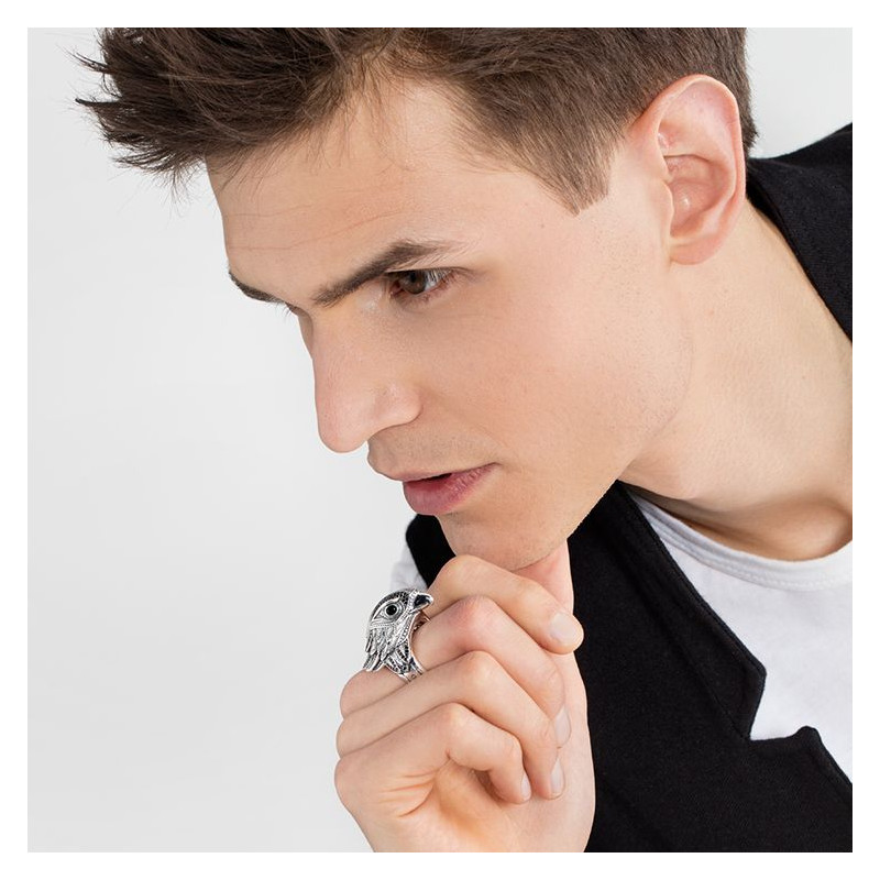 Découvrez la bague Faucon, une prouesse de 22 mm de largeur et 8 mm d'épaisseur, sculptée en argent massif 925/1000. Cette œuvre singulière s'envole avec grâce, sertie d'onyx et de zirconium noirs, évoquant les cieux nocturnes mystiques. Sa hauteur de 37 mm rend hommage à la stature impressionnante du rapace qu'elle représente. Une création allemande dont l'élégance fait vibrer l'âme de l'amateur de beauté.