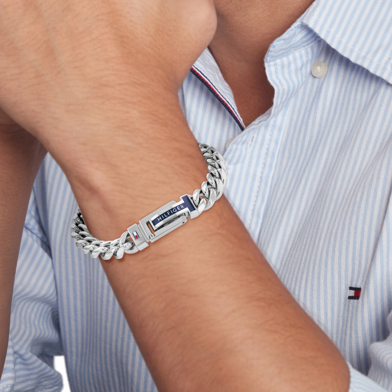 Découvrez le Bracelet Acier Maille Gourmette, une pièce intemporelle pensée pour l'homme contemporain. En acier aux reflets argentés, ce bijou capture la douce lumière pour mieux scintiller à votre poignet. La maille gourmette trouve ici une interprétation audacieuse, sublimée par des touches de bleu vif, encapsulant l'esprit libre et audacieux de la marque. Avec une longueur de 19 cm, ce bracelet est une invitation à l'allure décontractée, mais raffinée.