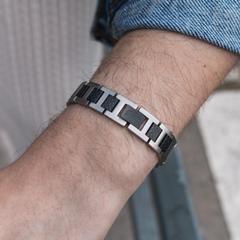 Le bracelet Metropole "L" est une ode à l'élégance masculine moderne. En acier inoxydable aux couleurs raffinées de noir et de gris, il incarne une allure urbaine et sophistiquée. Doté d'un fermoir clipable, il s'ajuste gracieusement entre 13 cm et 19 cm, s'adaptant à toutes les poignets avec une finesse inégalée. Profitez de cette pièce exceptionnelle pour sublimer votre poignet avec grâce et assurance. Ce bracelet est accompagné d'une garantie de 2 ans, symbole de qualité et de durabilité.