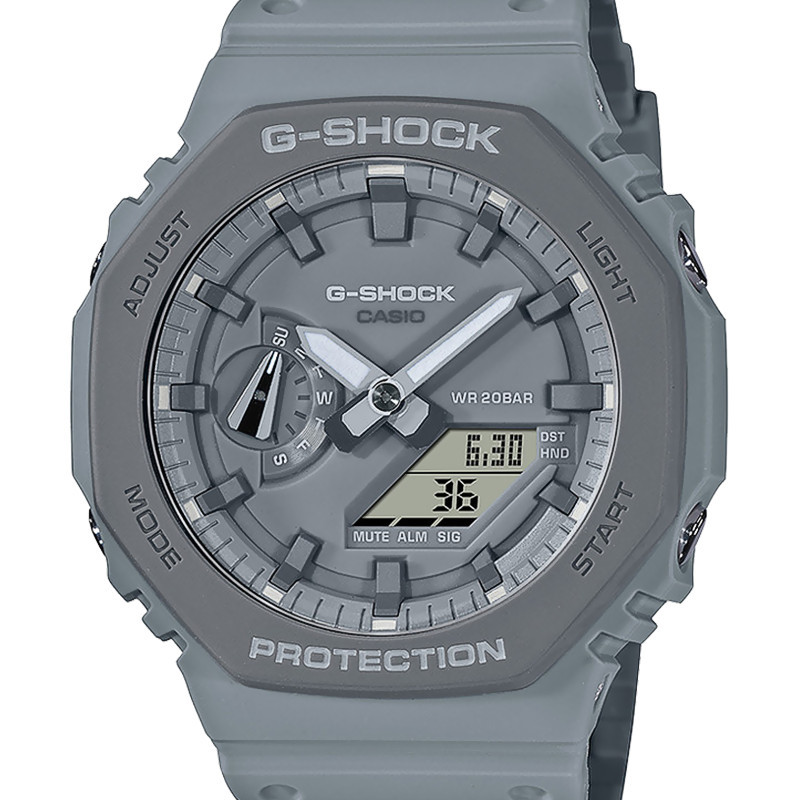 Ce qui rend cette montre exceptionnelle, c'est aussi sa résistance inégalée à l'eau, certifiée pour une pression allant jusqu'à 20 bars. Que vous soyez un passionné de plongée, de natation ou simplement un aventurier soucieux de la fiabilité de votre équipement, cette G-Shock vous suit jusque sous l'eau, à une profondeur impressionnante de 200 mètres. Mais la G-Shock ne se contente pas de sa solidité phénoménale. Elle marie haute technicité et modernité avec un affichage mixte analogique-numérique qui offre une lisibilité sans pareil. Les aiguilles luminescentes, renforcées par le rétroéclairage LED, assurent une visibilité parfaite dans les conditions les plus basses en lumière.