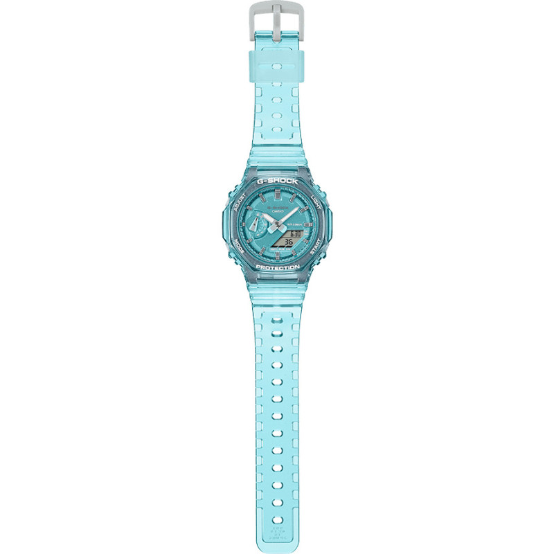 La montre G-Shock S-Series en bleu transparent est bien plus qu'un simple accessoire ; c'est une déclaration de style et une prouesse technologique. Conçue pour ceux qui ne souhaitent pas faire de compromis sur la résistance, elle est équipée d'une structure robuste qui défie les chocs les plus violents. Grâce à la transparence de son boîtier et de son bracelet, elle expose un intérieur minutieusement conçu, ce qui en fait un choix audacieux pour les amateurs de mode qui cherchent à se démarquer.