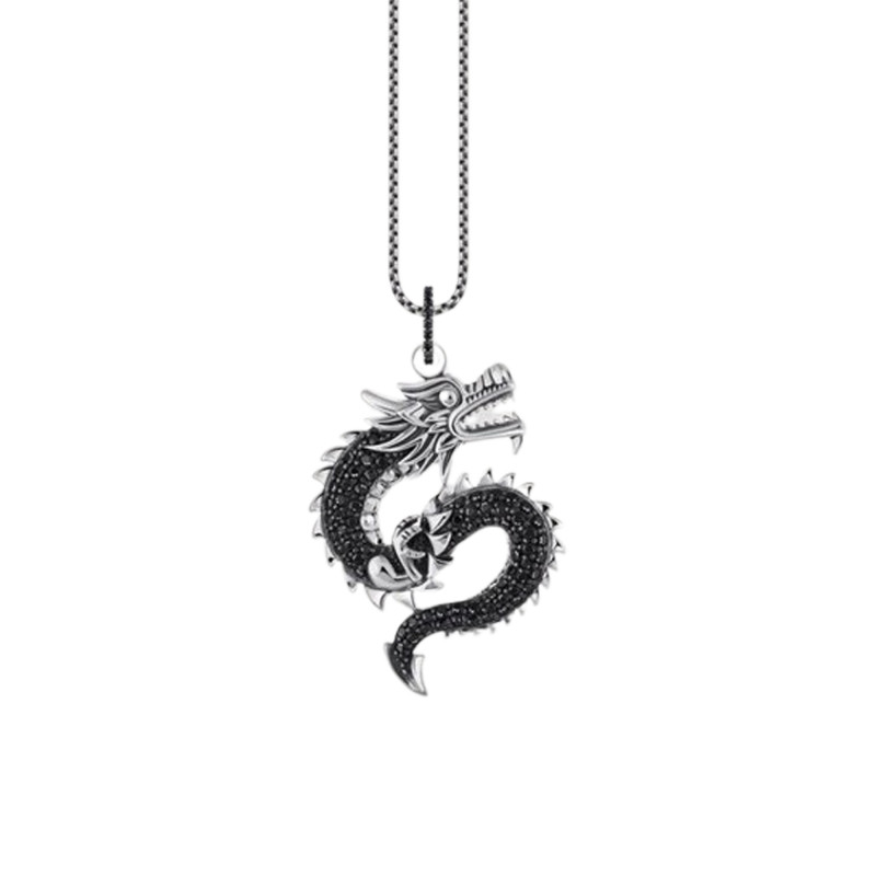 Découvrez le pendentif Dragon en argent 925, une création audacieuse où mythes et élégance se rencontrent. Ce bijou homme, à la fois puissant et envoûtant, est paré de pierres noires serties à grains, illuminant le regard de celui ou celle qui le porte. Le pendentif, aux dimensions généreuses, affiche fièrement une largeur de 28,60 mm et une hauteur de 44,00 mm, embrassant votre cou d'une aura mystique et protectrice. La qualité de l'argent massif 925/1000, finement polie, confère une brillance éternelle à cette œuvre intemporelle.